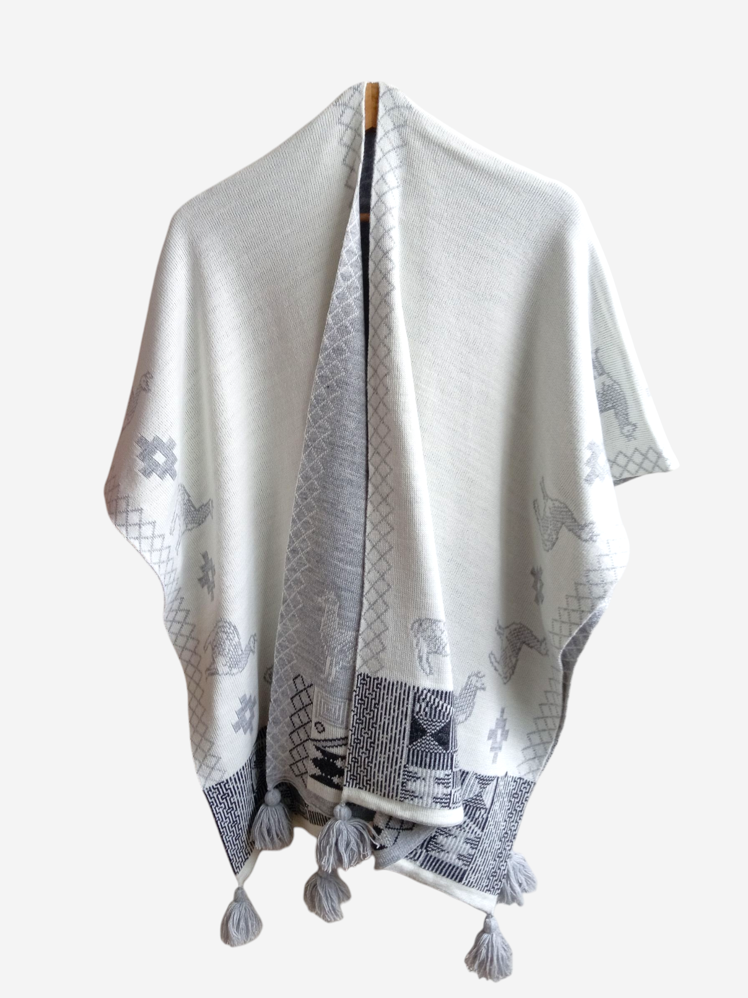 Ruana con motivos Blanco y Plata