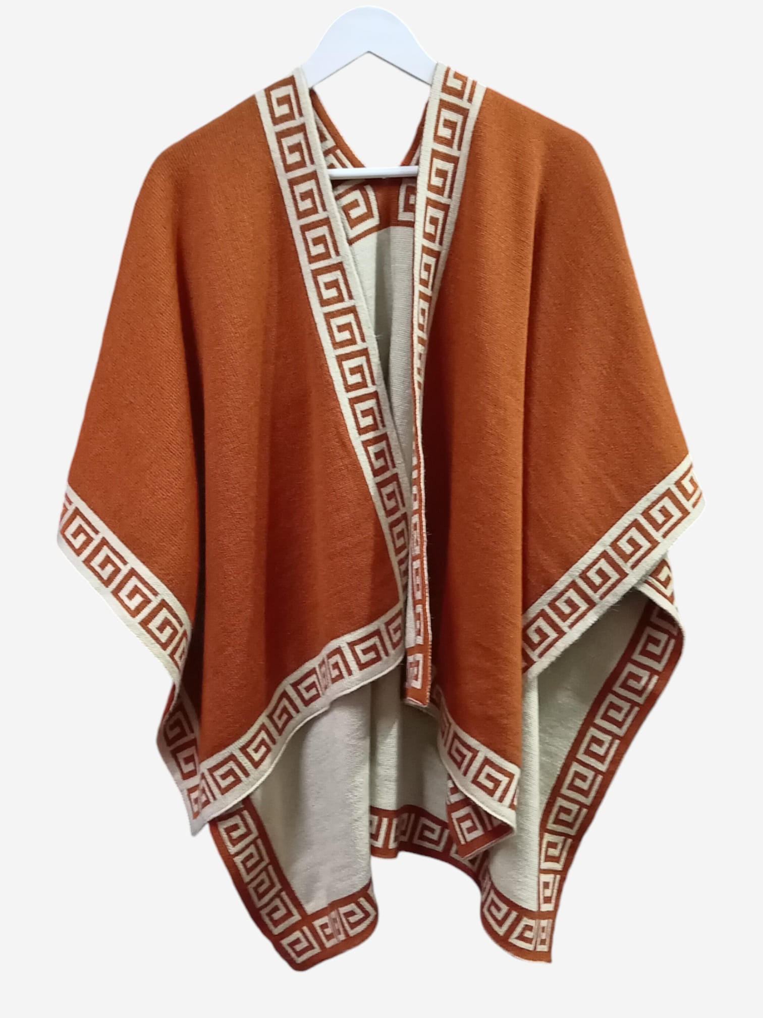 Las ruanas o capas son ponchos abiertos, en este caso elaborada en base a lana de alpaca, suave y amigable con la piel, no pican.