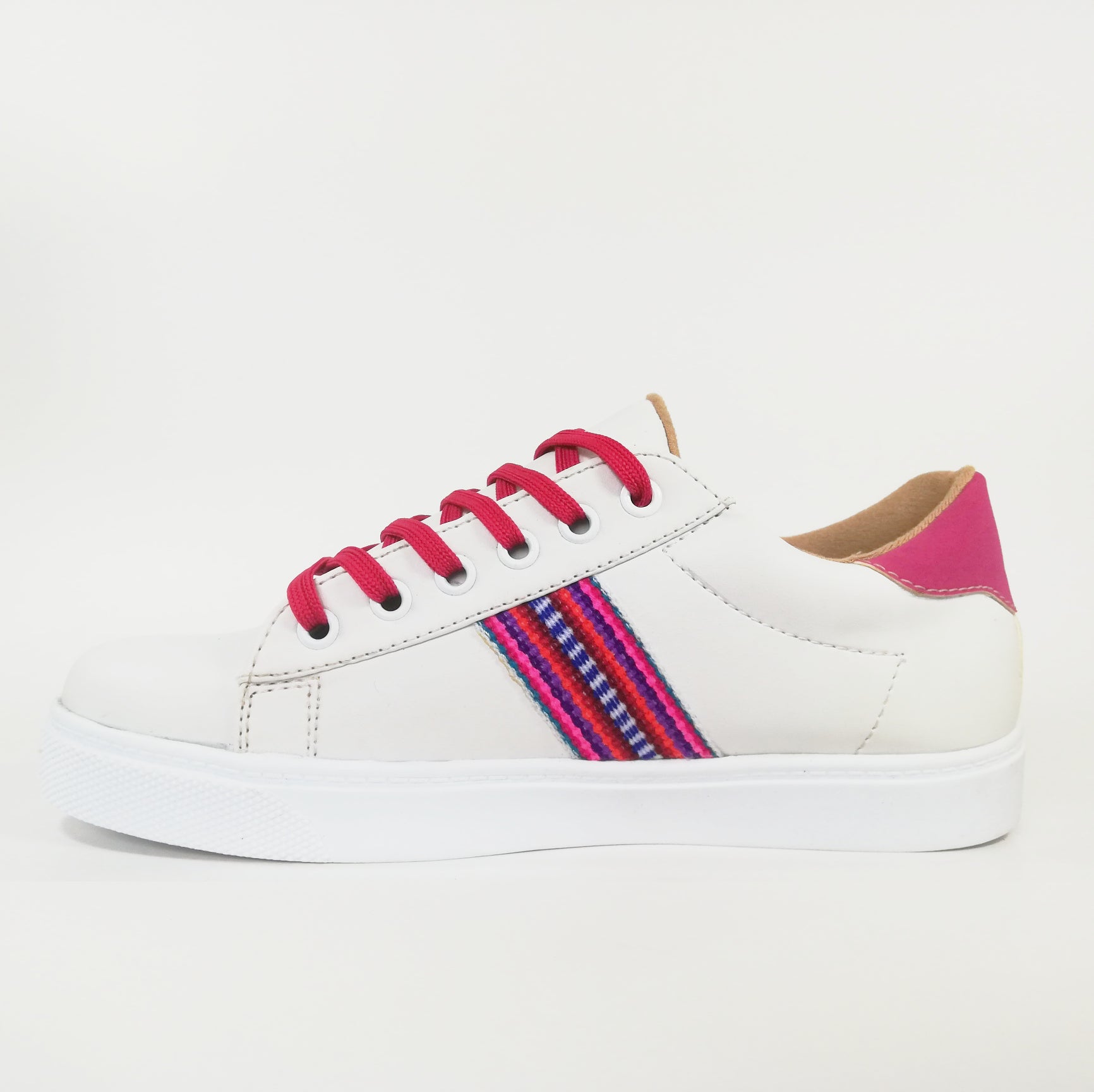 Zapatilla Dama Urban Blanco y Fucsia Cuero Natural