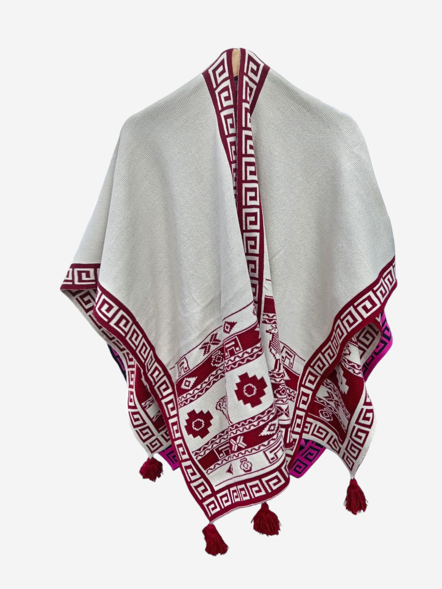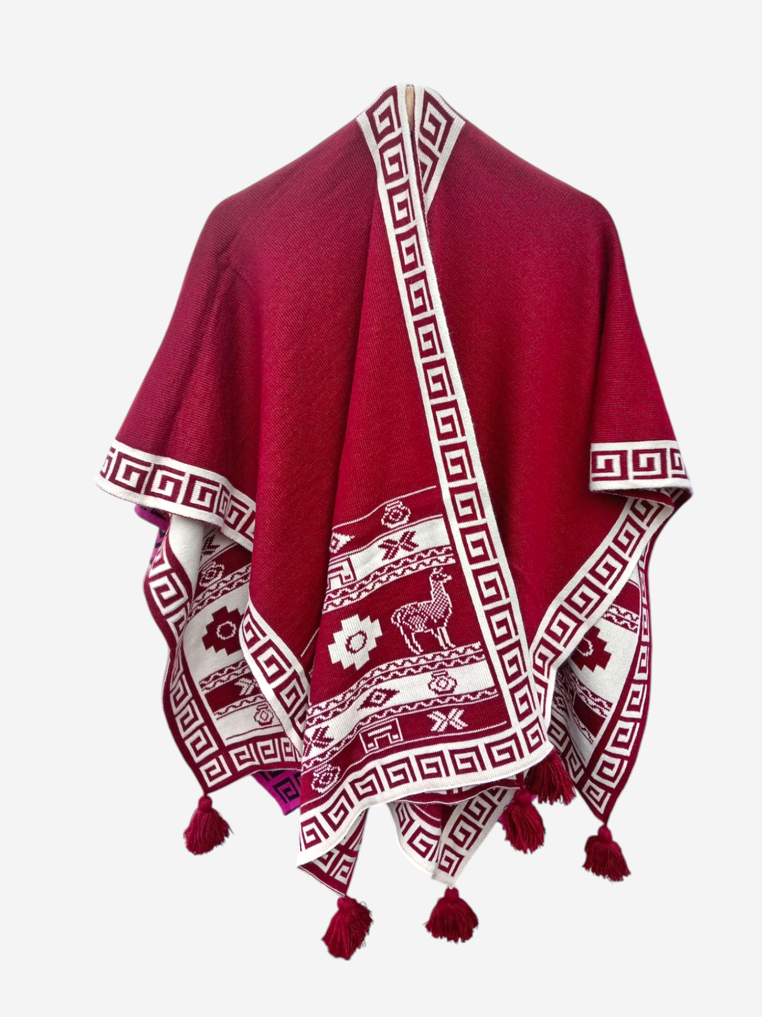 Las ruanas o capas son ponchos abiertos, en este caso elaborada en base a lana de alpaca, suave y amigable con la piel, no pican.