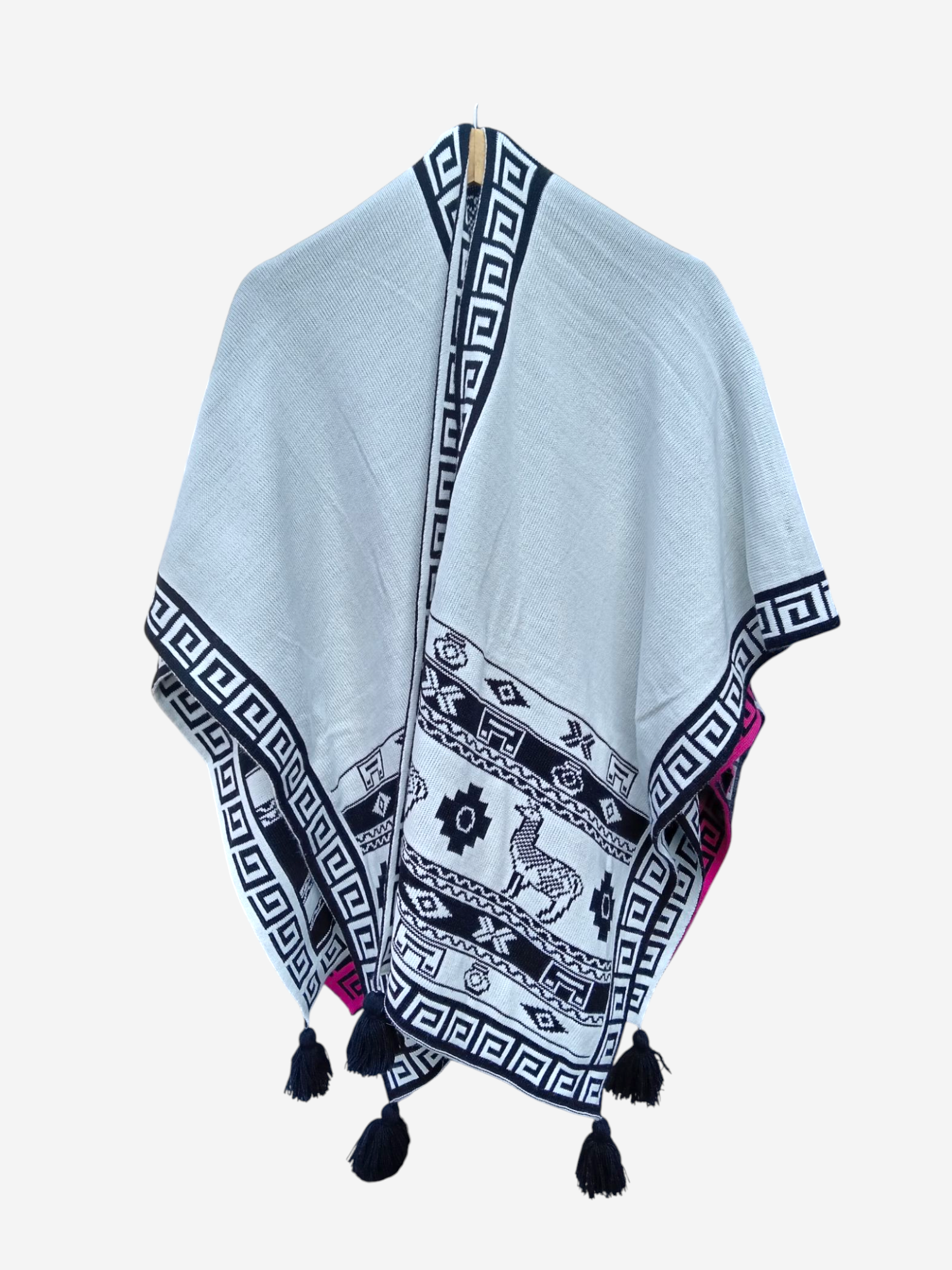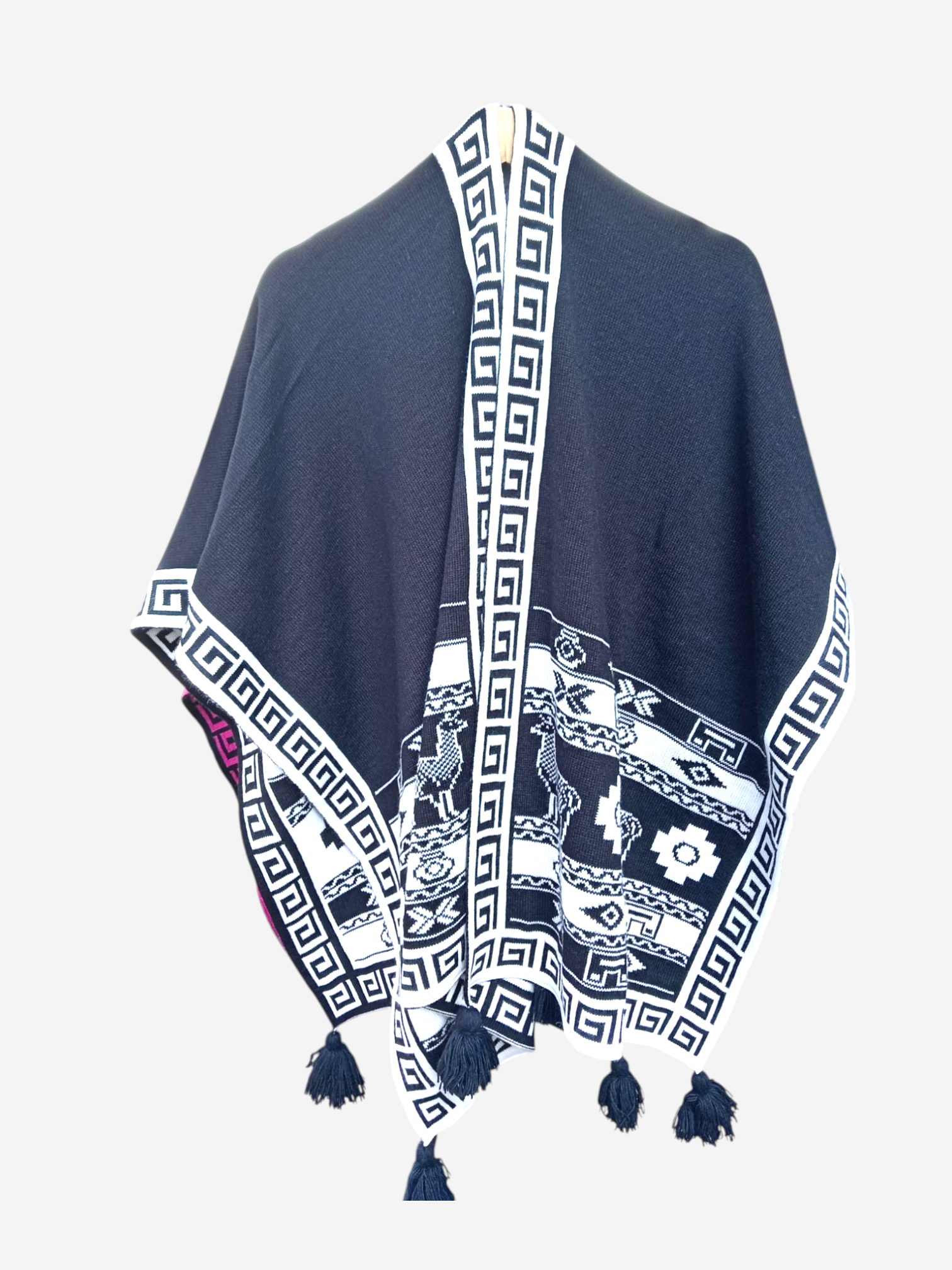 Las ruanas o capas son ponchos abiertos, en este caso elaborada en base a lana de alpaca, suave y amigable con la piel, no pican.
