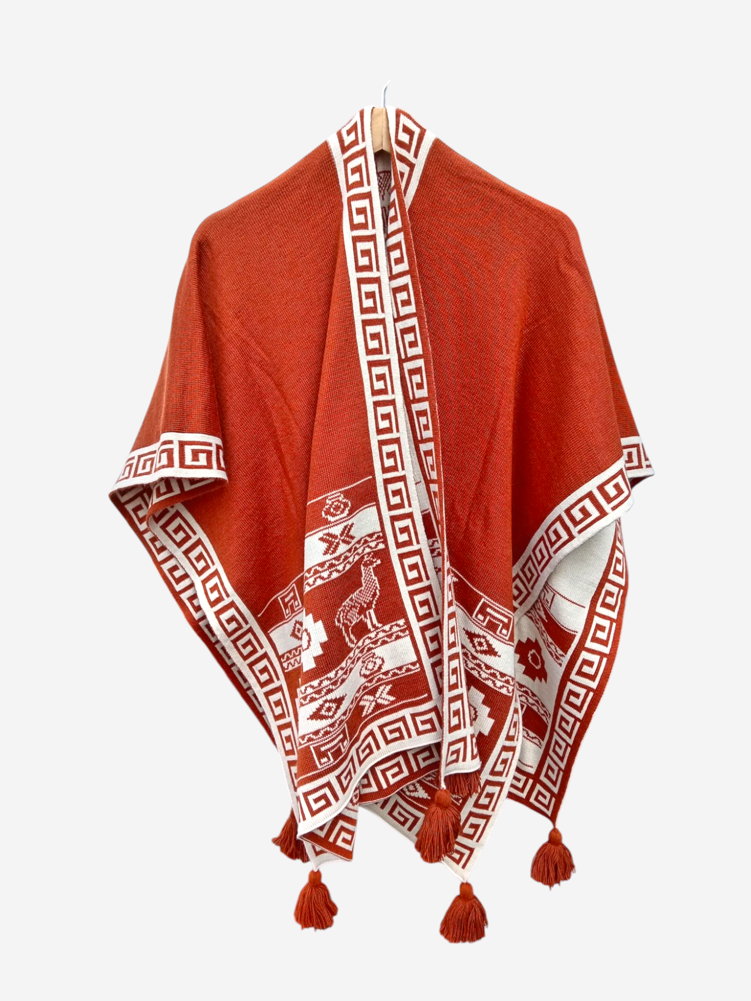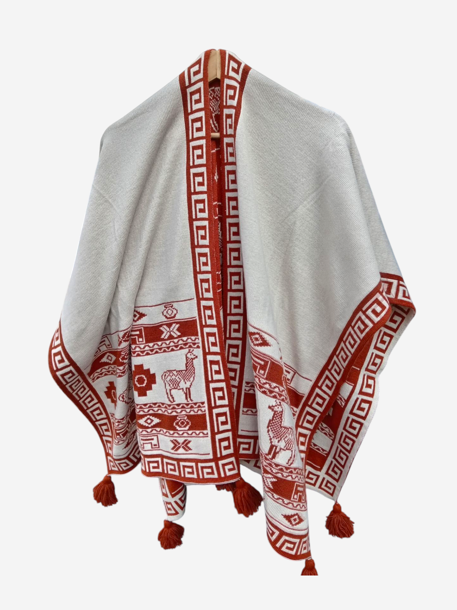 Ruana con motivos Ocre y Crema